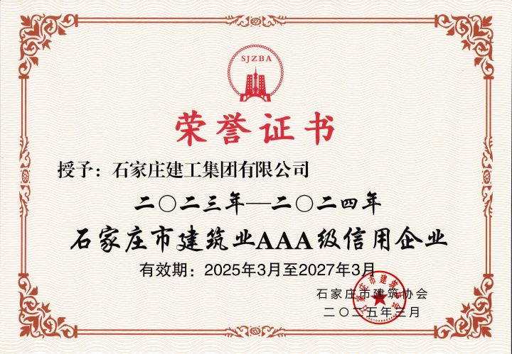 近日,我公司喜訊頻傳,在建筑行業(yè)領(lǐng)域斬獲多項(xiàng)集體榮譽(yù)與個(gè)人榮譽(yù)。先后榮獲2024年度“河北省應(yīng)急管理與安全生產(chǎn)先進(jìn)單位”“石家莊市建筑業(yè)安全生產(chǎn)先進(jìn)企業(yè)”“石家莊市建筑業(yè)先進(jìn)企業(yè)”“石家莊市建筑業(yè)民營企業(yè)十強(qiáng)”及“2023—2024年石家莊建筑業(yè)AAA級信用企業(yè)”等多項(xiàng)榮譽(yù)。